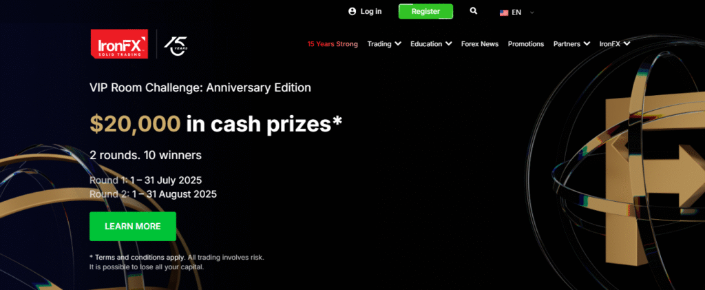 IronFX empowers traders with a dynamic range of deposit bonuses, trading competitions, and promotional incentives. Whether you’re a beginner or an experienced trader, IronFX’s exclusive bonus offerings and cash-prize contests aim to enhance your trading capacity and reward consistent performance.